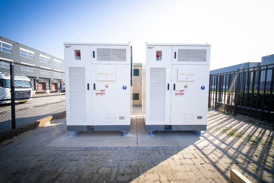 Ecopowercell installeerde twee RCT Power CESS200-systemen met vloeistofgekoelde LFP-batterijen, geïntegreerd BMS/EMS en RPEMS energiemanagement. De systemen laden automatisch tijdens goedkope uren en leveren terug op momenten dat de energieprijs het hoogst is. Dankzij de robuuste IP54-behuizing en compacte afmetingen zijn de systemen eenvoudig te integreren binnen de bestaande energie-infrastructuur.
